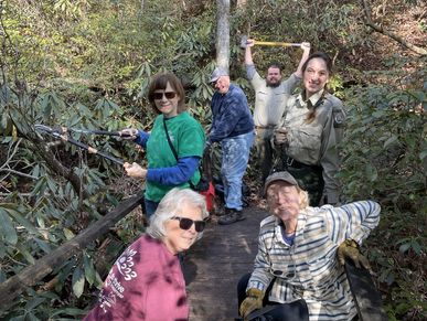 Friends volunteer to pick up trash at the Overlooks and on the Trails. Visitors are encouraged to leave no trace but unfortunately, some do not heed the request. Friends also clear small natural debris from the walkways.