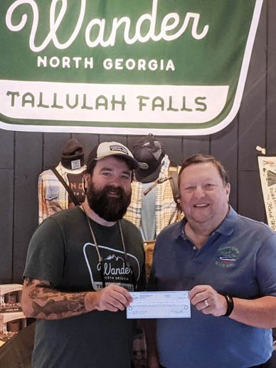 Josh Brown, co-owner of Wander North Georgia, presented a donation check to Rich Mallicote, Treasurer of the Friends of Tallulah Gorge State Park, for use in supporting the Park.
